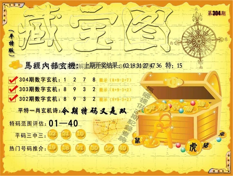 306期:平特藏宝玄机:【今期生肖二三头】 特码范围评估:01-28 |